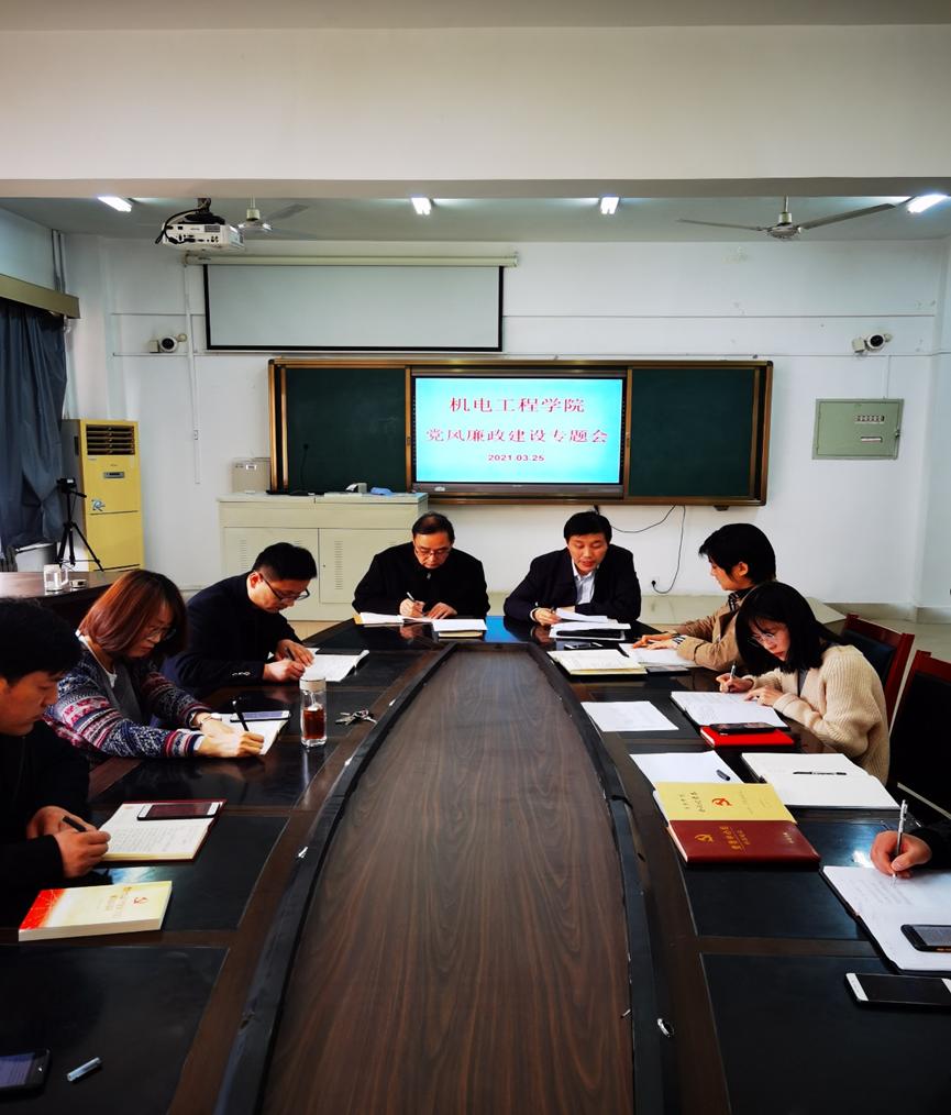 按照学校党风廉政建设工作的统一部署和要求,进一步强化党风廉政建设责任意识,落实全面从严治党各项要求,千亿国际娱乐于3月25日上午在机电楼406会议室召开2021年党风廉政建设工作会议,部署各项党风廉政建设工作。会议由学院党委书记祝磊主持。学院党委班子成员、各系主任、各科室负责人以及各党支部书记参加了会议。