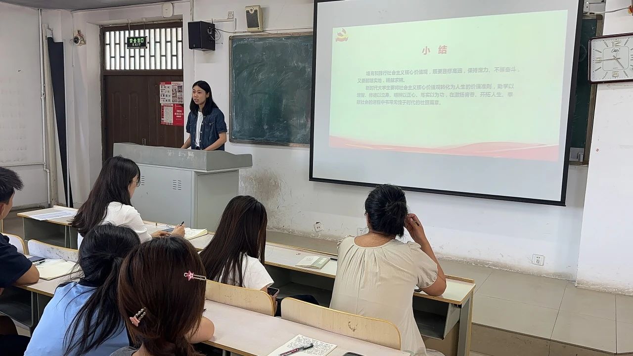 最后,仵晓晗老师将会议的内容与社会实际相联系,通过列举钱学森的事例勉励新时代的青年党员应当勤学以增智、修德以立身、明辨以正心、笃实以为功,激扬青春,开拓人生,在奉献社会进程中书写无愧于时代的壮丽篇章。