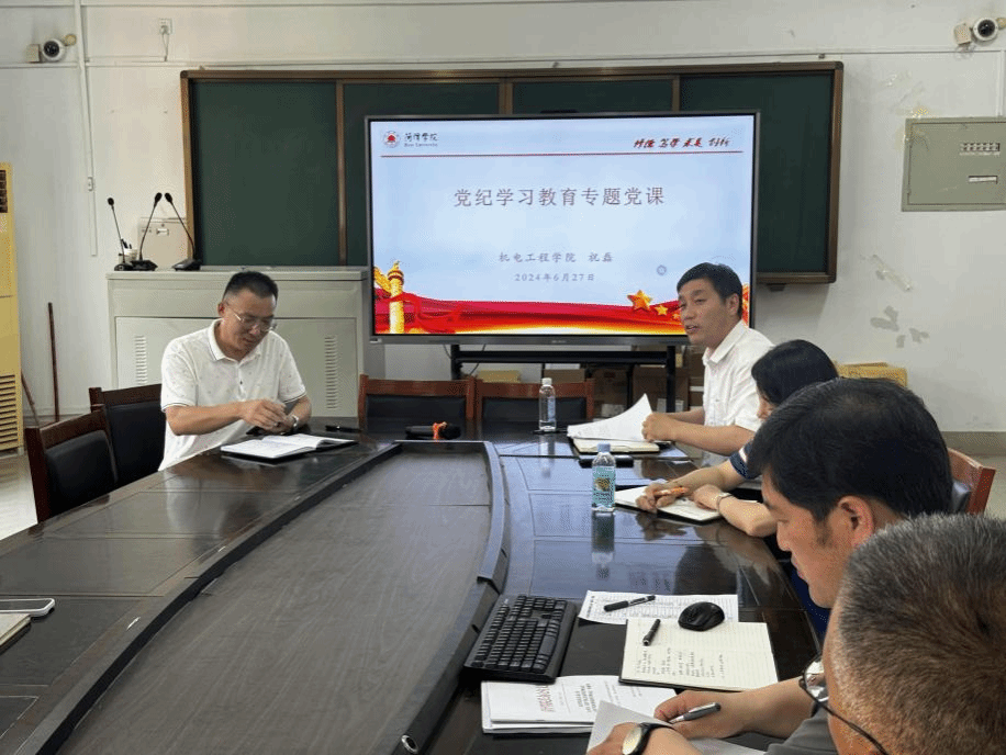 为庆祝中国共产党成立103周年,扎实推进党纪学习教育,6月27日,我院党委书记祝磊为学院全体党员讲授党纪学习教育专题党课。