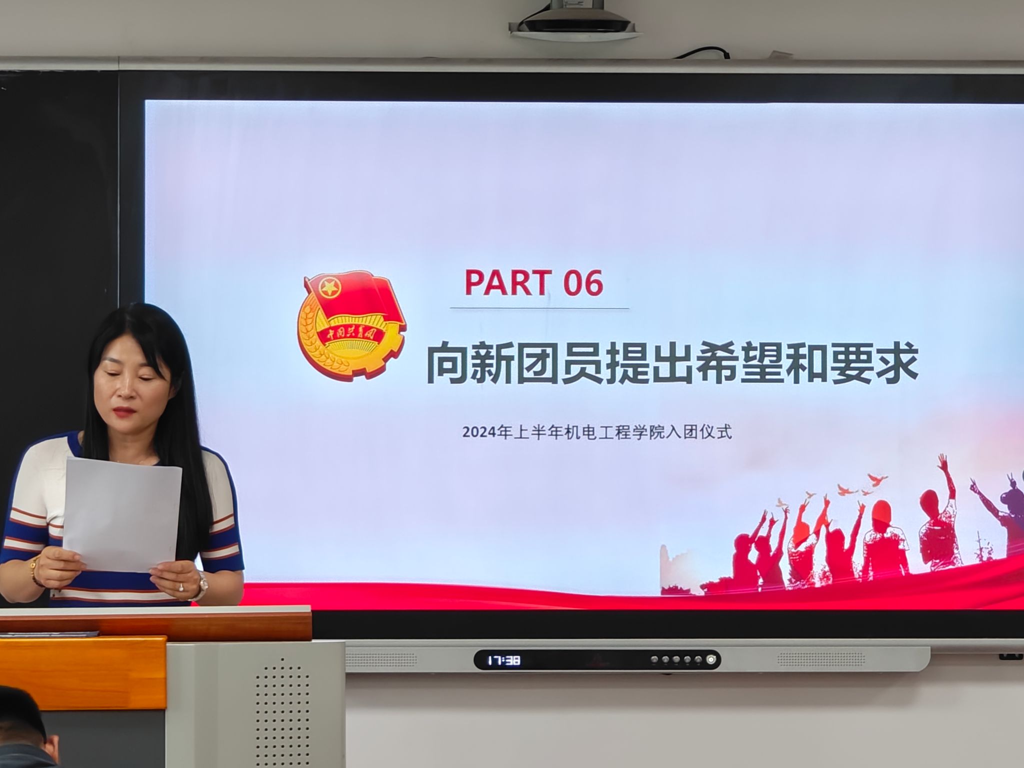 最后,在场团员全体起立,合唱中国共产主义青年团团歌,入团仪式在大家嘹亮的歌声中圆满结束。