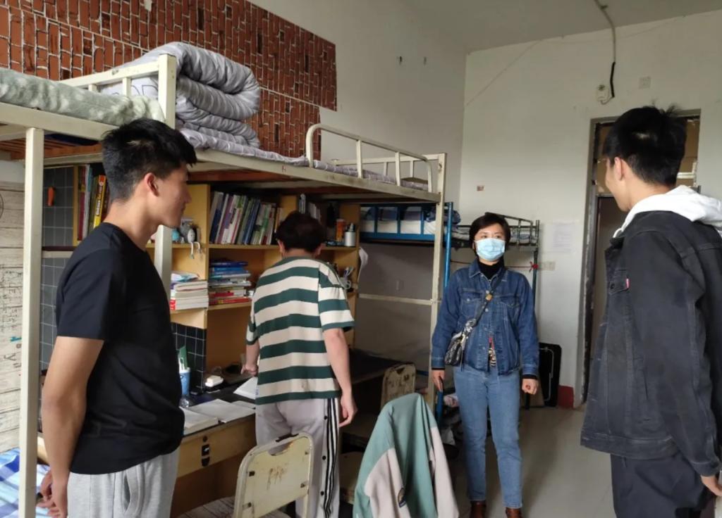 春意萌动,美丽校园呈现出一派新气象。为贯彻落实精准疫情防控要求,了解同学们学习生活状况,提高学生宿舍卫生,增强安全意识,排除安全隐患,保持优良舒适的宿舍环境。4月27日,我院党委副书记李谨辰,辅导员李亚南、仵晓晗、张如明对我院学生宿舍进行走访。