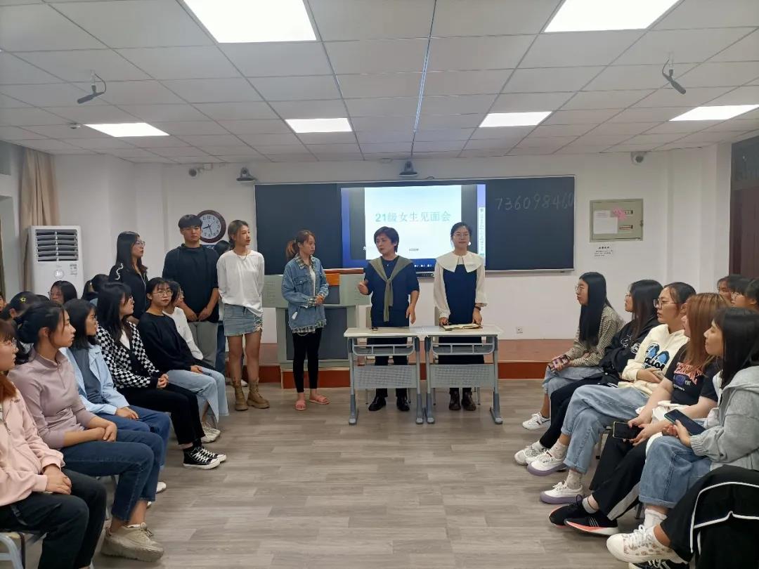 秋风送爽,金桂飘香。新学期伊始,千亿国际娱乐大家庭迎来了各新生的加入。为促进同学间的交流,增进师生间的友谊,我院于9月29号晚在机电楼举行了2021级女生座谈会。院党委副书记李谨辰、辅导员老师崔晓雪以及全体2021级新生共同参与本次交流会。