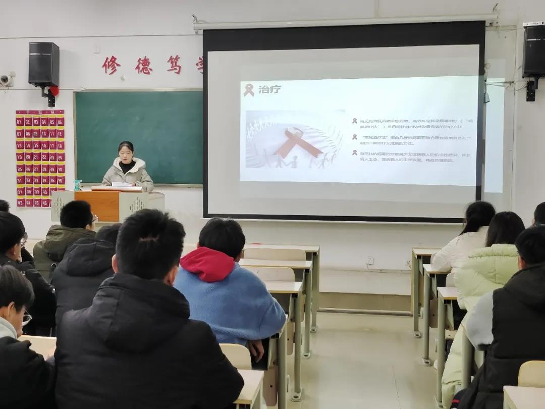 主讲人首先向同学们阐述了艾滋病的起源,介绍了感染艾滋病的途径,艾滋病的流行现状、防控措施、社会影响等知识以及如何与艾滋病人相处。随后,通过大量实例和图片分析了艾滋病的危害性,从艾滋病的传播途径、诊断和治疗及其预防方法等方面作了深入讲解。在现场互动中,同学们踊跃发言,积极提问,向主讲人提出自己的疑惑。对于同学们的问题,主讲人一一解答。