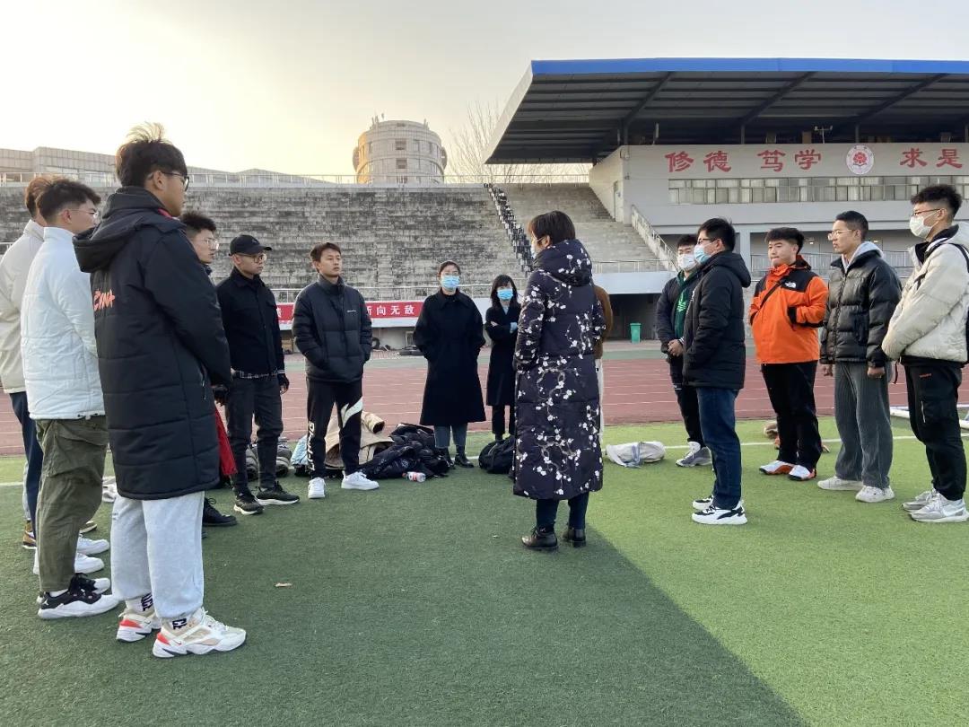 在越野赛即将到来之前,为鼓舞我院运动员积极备赛。2021年12月6日下午,院党委副书记李谨辰、辅导员老师李亚南、崔肖雪、赵相博到训练场地慰问全体越野队运动员。