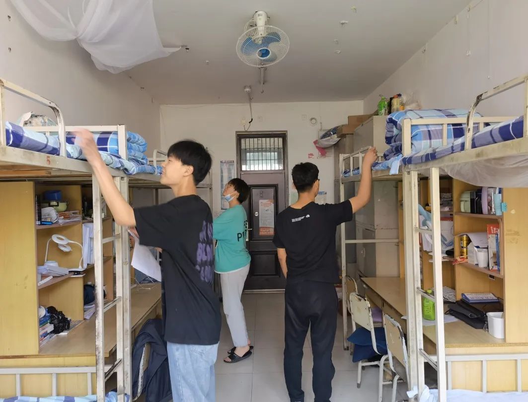 院领导及各辅导员老师走访学生宿舍,和同学们进行亲切友好交流,传授宿舍安全经验,叮嘱同学们要把宿舍安全谨记心间。随后对宿舍进行检查和点评,评选出优秀宿舍,并为优秀宿舍张贴小红花。同时告诫同学们,要保持此次活动的热情,将安全、干净的宿舍贯彻到底。