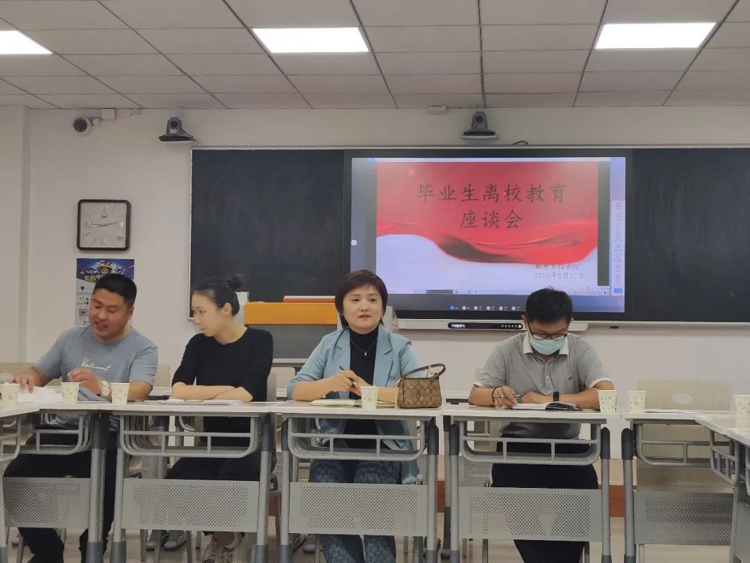 相聚不觉时光短,别离方知情意浓。为做好2022届毕业生离校工作,强化毕业生离校教育,增强毕业生的母校情结和感恩意识,切实保障毕业生安全离校、文明离校、和谐离校,2022年5月31日,我院组织毕业生代表召开2022届毕业生离校教育座谈会。院党委副书记李谨辰,辅导员老师张如明、仵晓晗、赵相博、崔肖雪以及毕业生代表和部分在校学生代表参加此次座谈会。