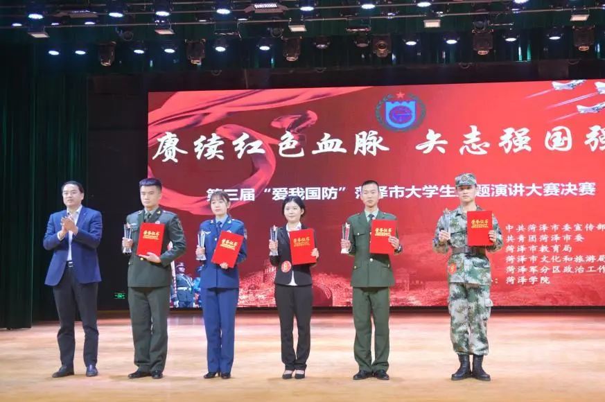 奋进新时代,聚力强军梦。为加强新时代国防教育,培养新一代大学生爱国主义情感,积极营造关心国防、热爱国防、建设国防、保卫国防的浓厚氛围,10月20日下午,第三届“爱我国防”菏泽市大学生主题演讲大赛决赛在我校艺术中心演播厅举行。千亿国际娱乐学子葛临昂同学以优异的成绩晋级决赛。