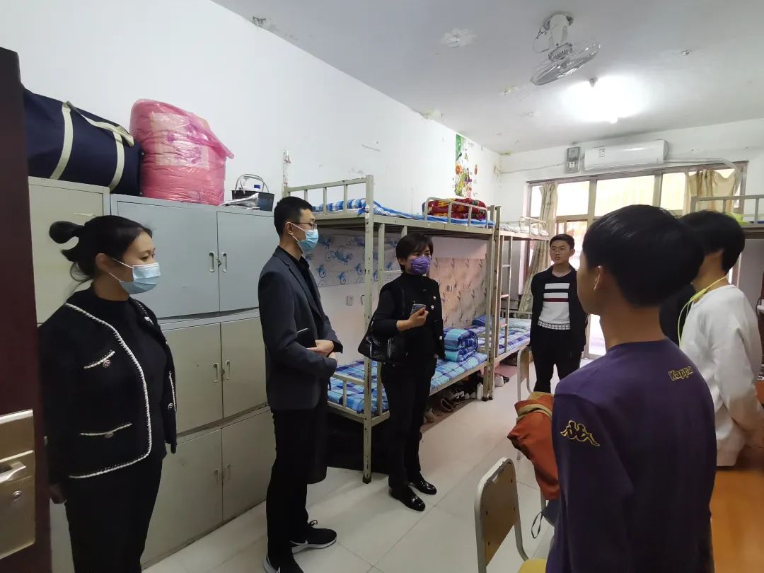 为了真实全面地了解学生的身心状况,掌握学生的思想状态,切实维护学生宿舍的安全稳定,营造良好的宿舍文化氛围,2022年11月1日,学院党委副书记李谨辰,辅导员老师仵晓晗、赵相博、崔肖雪、陈传阳、邬瑜锦以及各班班主任深入学生宿舍送去殷切关怀和深切慰问。