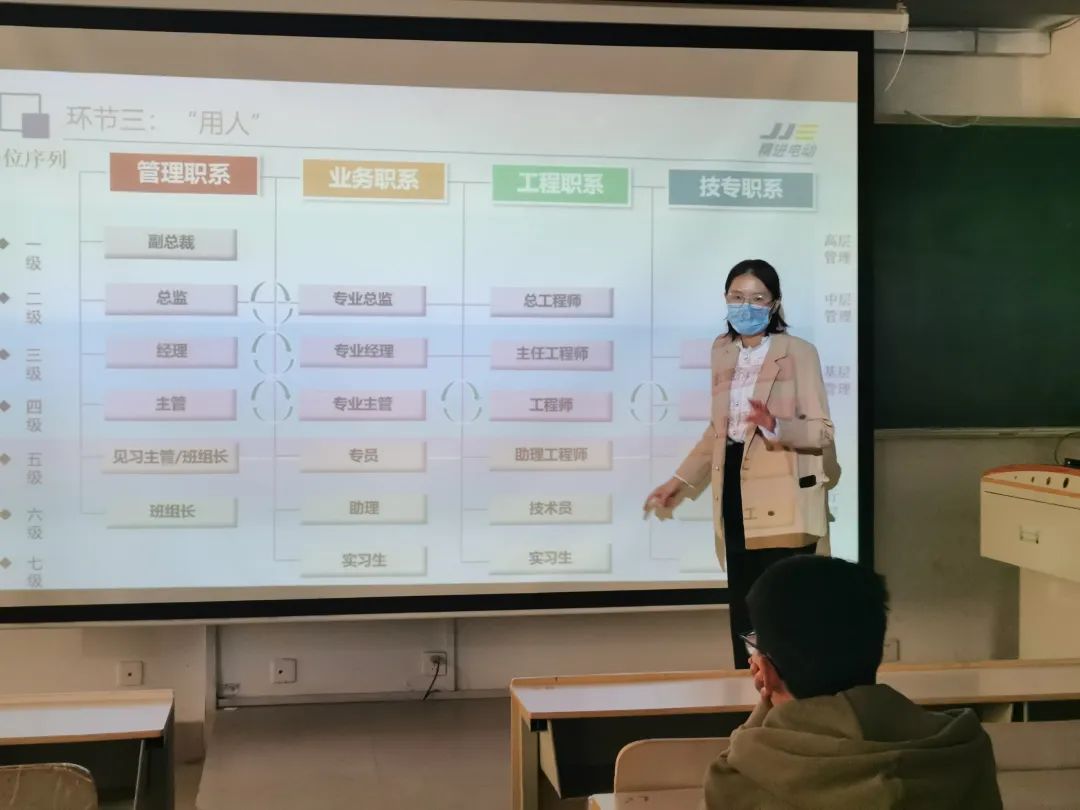 为给我院毕业生提供更多的就业机会,2022年11月2日,我院于机电楼416教室举办精进电动(菏泽)有限公司校园宣讲会,学院党委副书记李谨辰,辅导员老师仵晓晗、邬瑜锦、陈传阳,精进电动有限公司工艺研发部经理刘可欣、人事部经理黄鹤、培训负责人邵晴出席本次宣讲会。宣讲会由辅导员赵相博老师主持。