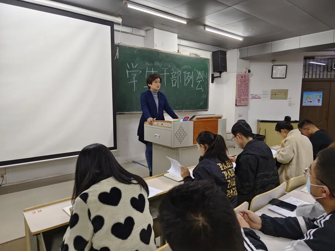 为贯彻学风建设方针,加强学生干部团队素质建设,提高学生干部的综合能力,2022年11月7日,我院于机电楼416教室召开学生干部例会,学院党委副书记李谨辰,辅导员老师仵晓晗、赵相博、崔肖雪、邬瑜锦、陈传阳以及全体学生干部参加此次例会。