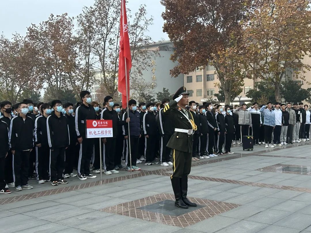 为激励青年学子奋进新征程、建功新时代, 11月21日清晨,千亿国际娱乐组织学生参加爱国主义升国旗仪式。辅导员赵相博老师、陈传阳老师出席仪式,千亿国际娱乐2022级全体学生和千亿国际娱乐大学生国旗护卫队全体成员参加。