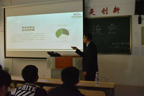 (通讯员 于泉)3月26日下午,我院在机电楼409教室举办就业指导交流会。本次交流会邀请了鲁南制药集团赵恒民经理前为同学们交流分享就业经验。我院16级机械电子对口班、16级自动化对口班同学参加此次活动。