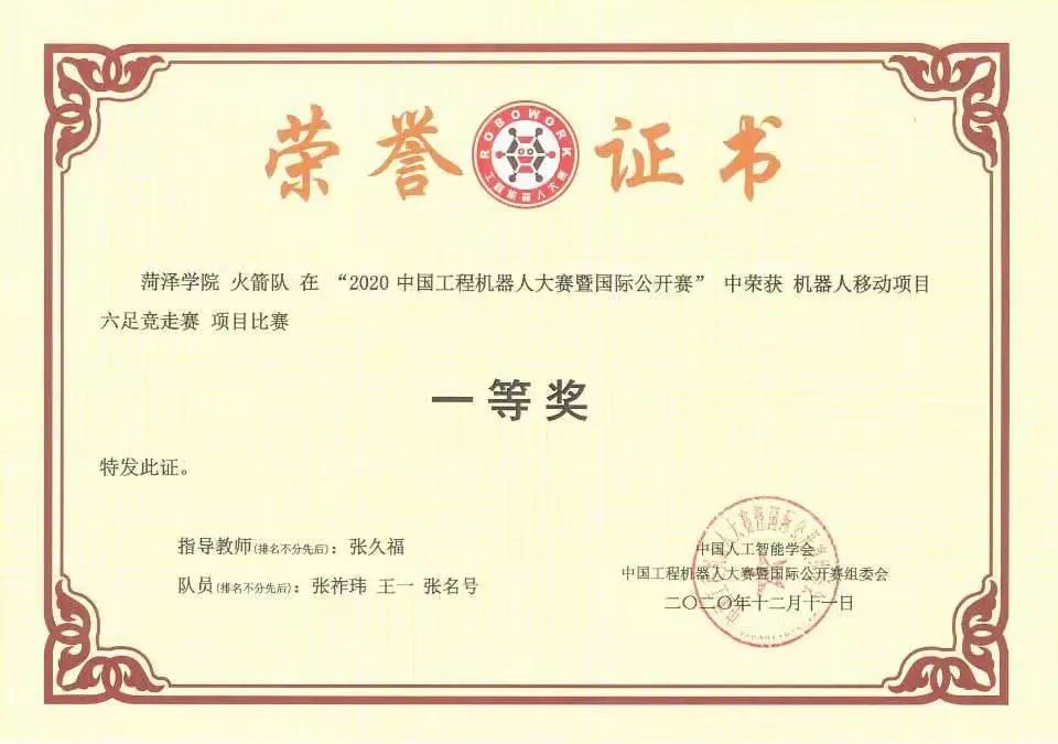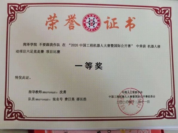 2020年11月,获中国工程机器人-等奖两项,二等奖一项,三等奖两项。
