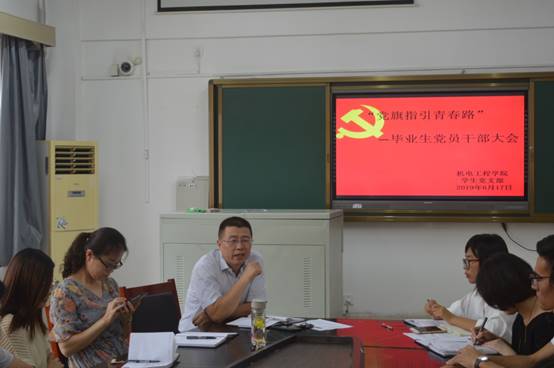 (通讯员 李世凡)6月17日下午,我院在406会议室召开“党旗指引青春路”——毕业生党员干部大会。我院党委副书记田丰、学生党支部书记陈伟、辅导员孙亚梅、各毕业班班主任以及毕业生党员、学生干部参加会议。