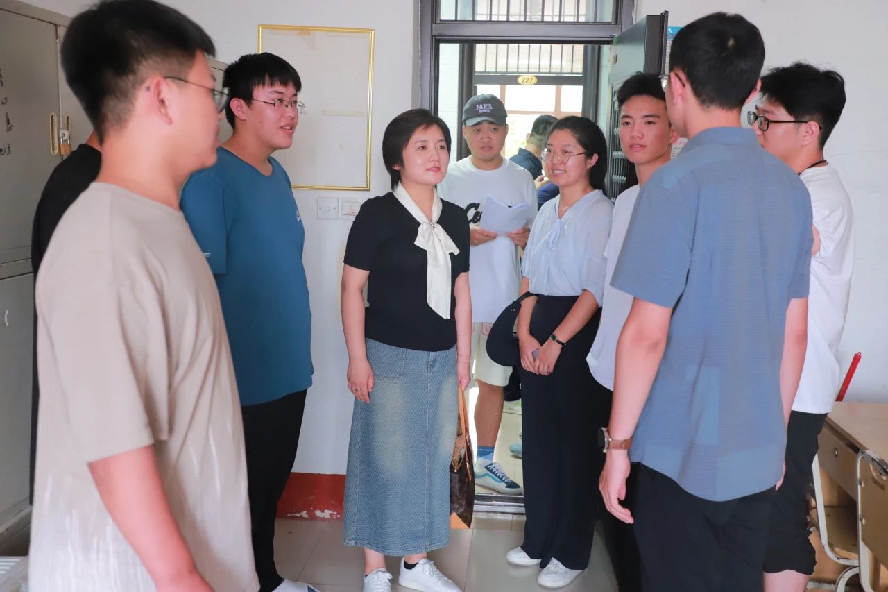 为更好地了解2023级新生入学情况,帮助新生更好适应大学生活,更快融入新集体,展现学院老师对新同学的殷切关怀和热烈期望,2023年9月2日,我院党委副书记李谨辰,全体辅导员及班主任老师深入新生宿舍,与新生面对面交流。