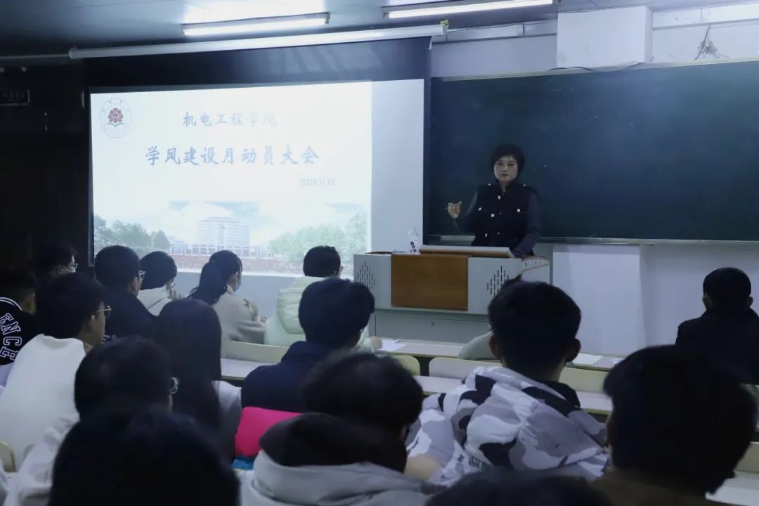 为深入学习贯彻落实党的二十大精神,落实立德树人根本任务,持续推进千亿国际娱乐优良学风建设,2023年11月14日我院于机电楼416教室召开学风建设月动员大会,院党委副书记李谨辰,辅导员老师仵晓晗、赵相博、崔肖雪、邬瑜锦、陈传阳、崔鲁杰以及全体学生干部参加此次大会。