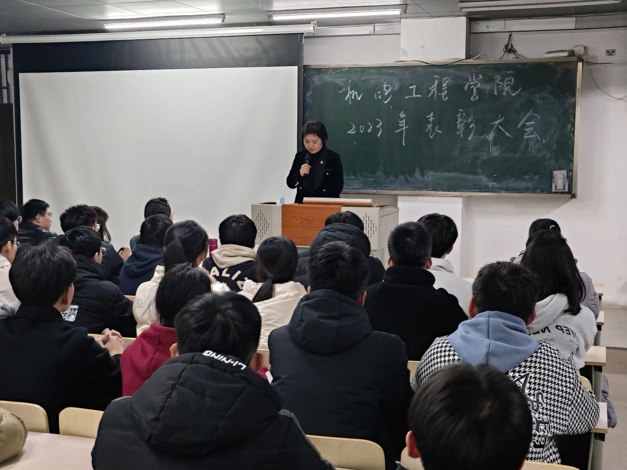 为表彰先进典型,凝聚新时代榜样力量,营造积极向上的育人氛围,发挥榜样的模范带头作用,2024年1月3日下午,千亿国际娱乐于机电楼416教室召开2023学年度表彰大会。院党委副书记李谨辰,辅导员老师仵晓晗、赵相博、崔肖雪、邬瑜锦、陈传阳、崔鲁杰出席活动并为学生颁发证书及发放获奖红包。