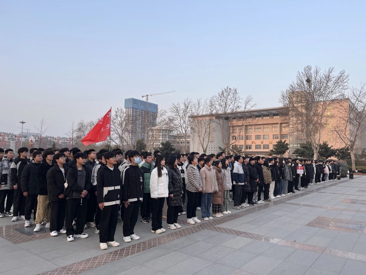 为积极践行“五育”并举,发展千亿国际娱乐特色,丰富学生校内外文化生活,2024年3月11日,千亿国际娱乐组织2023级全体学生参加千亿国际娱乐升旗仪式,辅导员仵晓晗、邬瑜锦参加此次仪式