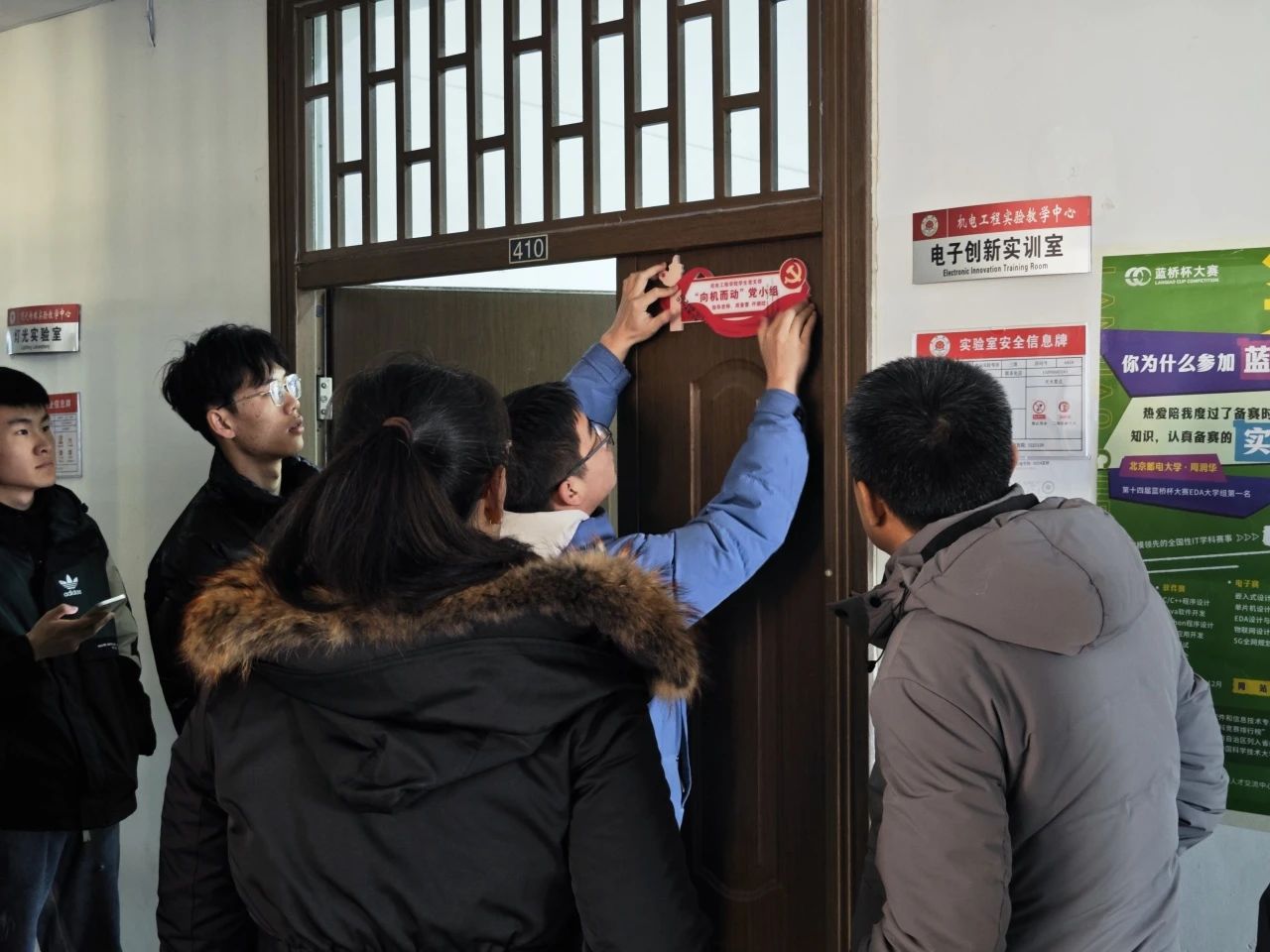 为表彰和鼓励在党的建设和学习氛围方面做出模范带头作用的学生、党员和退役军人,促进学生公寓宿舍文明建设。2023年12月20日,千亿国际娱乐于学生公寓举行党员宿舍、考研宿舍和退役军人宿舍挂牌仪式。辅导员老师李亚南、仵晓晗、赵相博、邬瑜锦、陈传阳、崔鲁杰出席本次仪式。