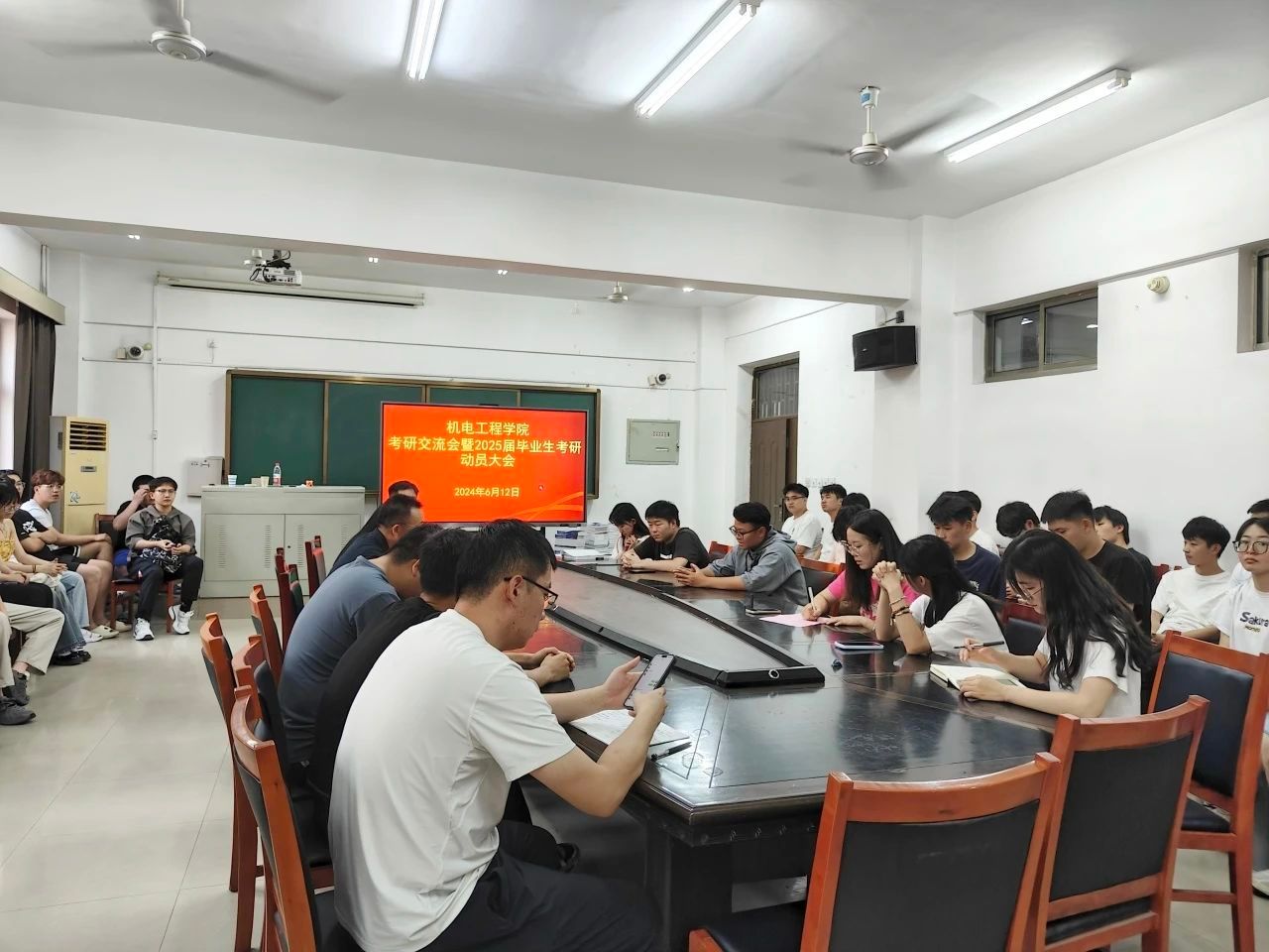 为进一步加强学院学风建设,帮助同学们更好地把握未来的考研形势、明确考研目标、更好地规划未来的学习生活、增强考研的信心与决心,6月12日,千亿国际娱乐于机电楼406教室召开考研交流会暨2025届毕业生考研动员大会,千亿国际娱乐院长江峰,院党委副书记陈凌云,穆国振、李超群、李明聪三位老师,以及辅导员赵相博、邬瑜锦、崔鲁杰出席此次大会。