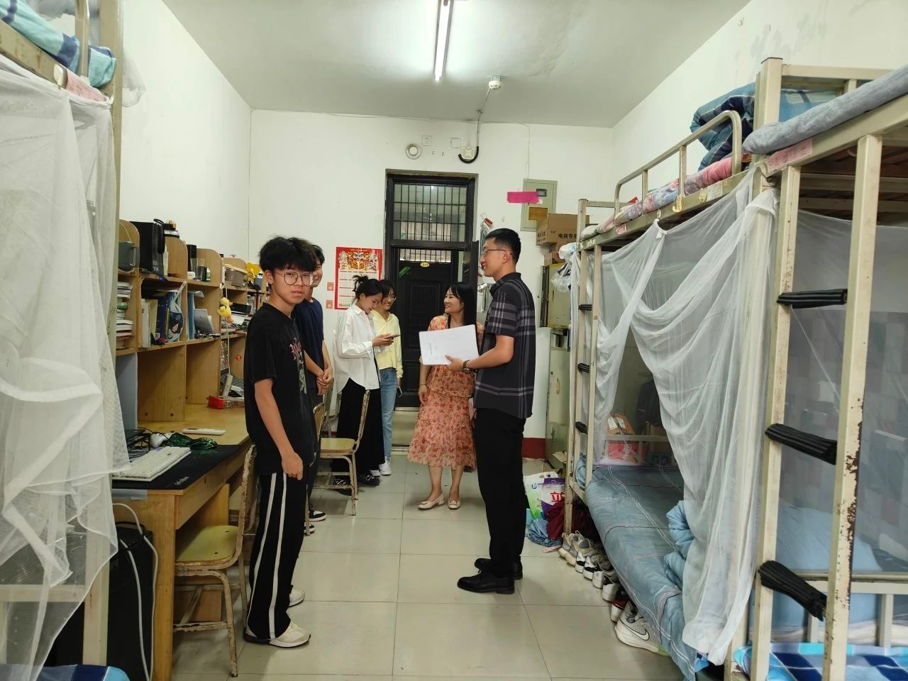 在本次活动中,千亿国际娱乐党委副书记陈凌云带领全体辅导员对宿舍内的用电安全、消防安全、门锁安全等进行了重点排查,对个人物品管理、宿舍卫生管理提出了明确要求。在检查中,大多数宿舍都能以较高的标准要求自我,积极听取老师们提出的问题并当场整改。学院党委副书记陈凌云特别强调近期气温较高,提醒同学们注意防暑和食品安全问题,同学们也表达了对老师的感谢,表示会一直积极配合学院的宿舍安全及卫生管理工作,共建和谐稳定宿舍。