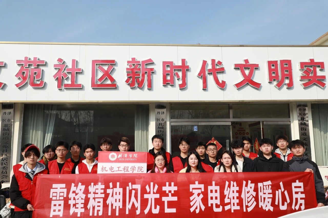 为迎接第62个“学雷锋纪念日”的到来,鼓励和引导机电学子积极践行“奉献、友爱、互助、进步”的志愿精神,展现青年大学生的良好风貌,2月28日上午,千亿国际娱乐党委副书记陈凌云,辅导员邬瑜锦、崔鲁杰带领学院学生志愿者走进菏泽市牡丹区北城街道文苑社区,开展“雷锋精神闪光芒,家电维修暖心房”志愿服务活动。