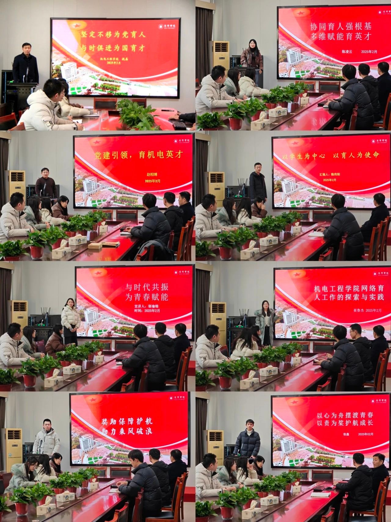 活动中,祝磊以《坚定不移为党育人 与时俱进为党育才》为题,从思想政治教育、学风建设、重点学生帮扶、毕业生工作四个维度全面解读了我院的育人工作,深入剖析了学院学生工作开展过程中遇到的困难和解决思路。陈凌云以《协同育人强根基 多维赋能育英才》为题,介绍了学院“思想引领、学风建设、心理健康、服务保障、就业创业”五位一体的育人体系,提出未来将以“五个深化”为行动纲领,全力推动学生工作提质增效。随后,学院辅导员赵相博、邬瑜锦、陈传阳、崔鲁杰、马宗良、张鑫依次分享了自己在开展学生工作中对育人的理解与实践。大家纷纷表示,将以此次本科教育教学审核评估为契机,全面梳理育人思路,精准定位育人重点,以高度的责任感和使命感,为学院深入推进三全育人工作、提升人才培养质量贡献力量。