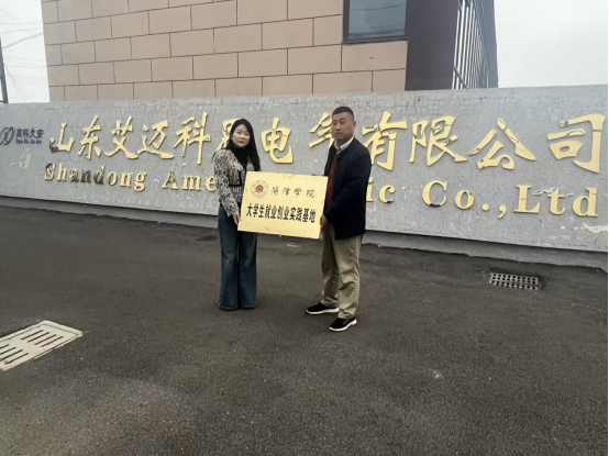 座谈会后,举行了“大学生就业创业实践基地”授牌仪式。陈凌云副书记代表学院向山东艾迈科思电气有限公司授予牌匾,企业负责人接过牌匾并表示,将以实践基地为载体,积极为我院学生提供优质的实习实训资源和就业岗位,助力学生提升实践技能、实现就业创业目标,推动校企双方实现互利共赢。