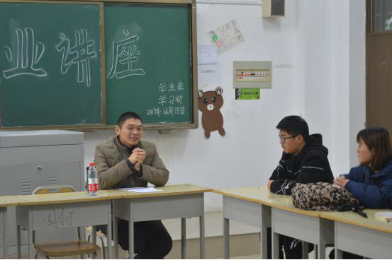 (通讯员 张运达)12月13日下午,我院于机电楼506教室举办创新创业讲座,祝凤金老师受邀到场与同学们面对面交流,17级学生代表参加。