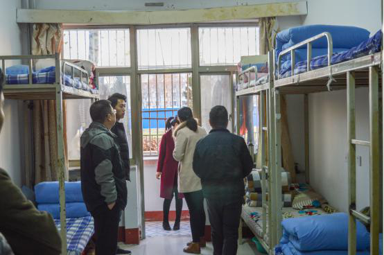 12月5日下午,院党委副书记田丰,辅导员何文娟、孙亚梅、李亚南,直本班班主任汤杰、一体化班班主任沈勇针对学生宿舍开始了突击检查行动,力求快速、有效的摸清宿舍安全和卫生现况,并及时预防和阻止安全事故发生,为学生的住宿生活提供安全保障。
