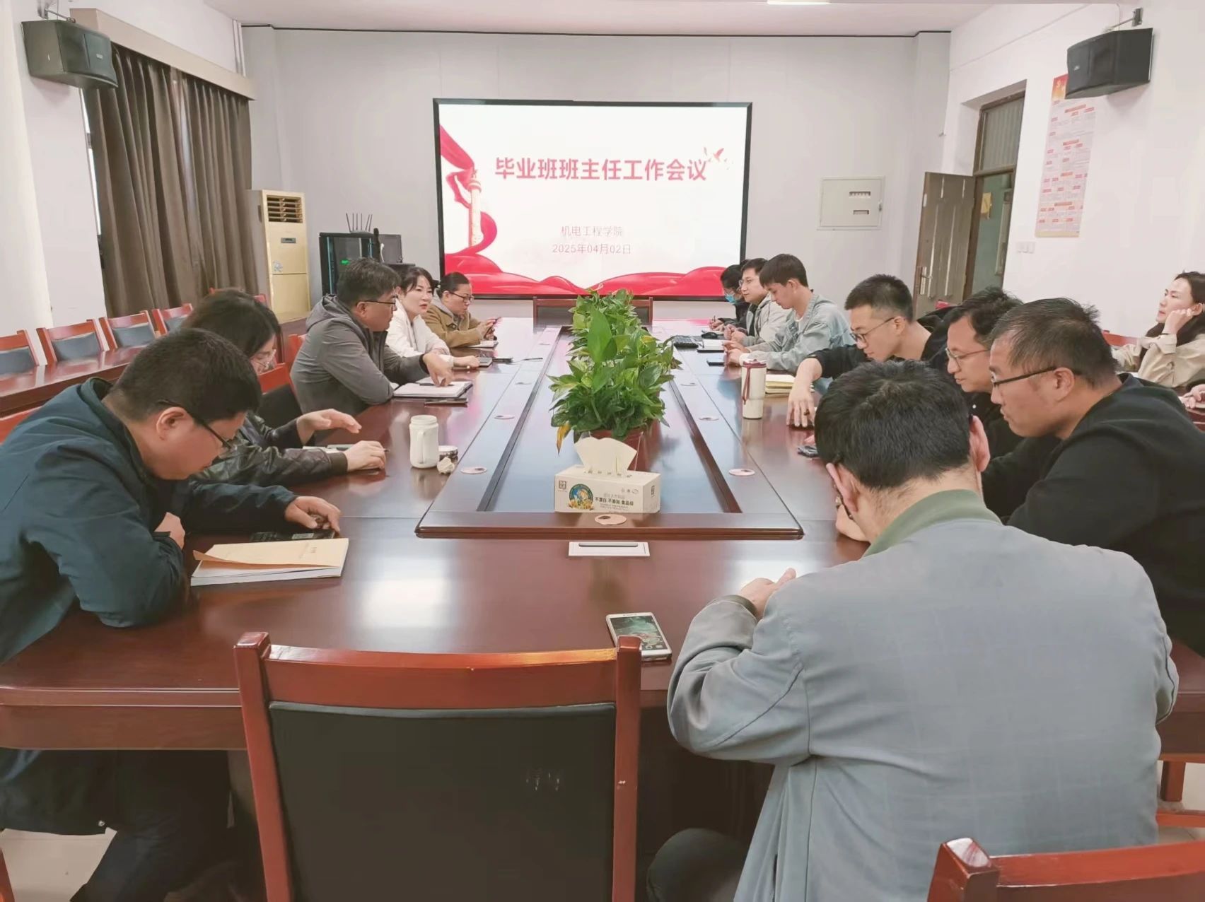 为扎实推进学院2025届毕业生就业工作,优化毕业生教育管理,4月2日下午,千亿国际娱乐于机电楼406会议室召开毕业班班主任工作会议,学院党委副书记陈凌云,副院长李忠广,毕业班班主任以及全体辅导员参加会议。