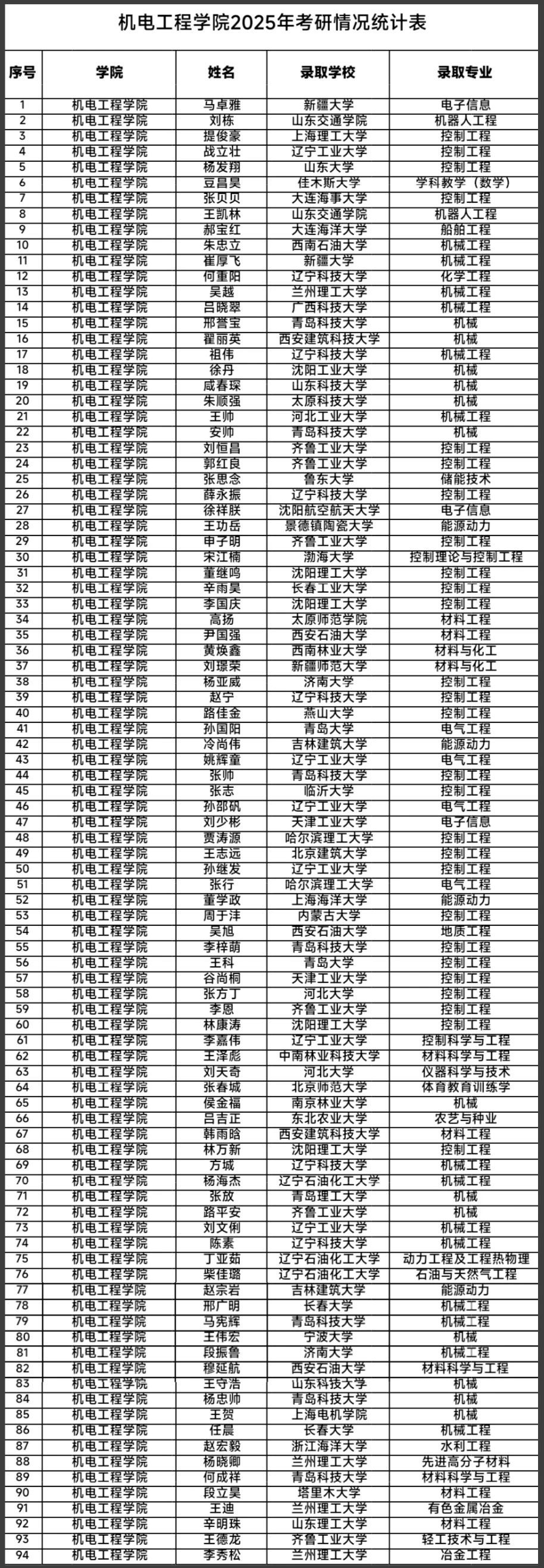 在2025年全国硕士研究生招生考试中,千亿国际娱乐学子以扎实的专业素养和拼搏精神,交出了一份令人瞩目的优异答卷:94名毕业生成功“上岸”,较2024年增长36.2%,其中杨发翔、张春城2名学生考入985院校,马卓雅等6人被211院校录取,刘少彬等6人进入双一流高校深造。这份硕果累累的成绩单,既是千亿国际娱乐25届毕业生们寒窗苦读、披荆斩棘的见证,也是我院人才培养质量与学风建设成果的生动体现!